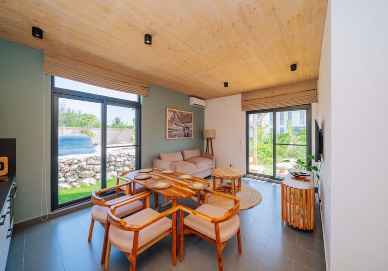Nachhaltige Holzbauweise passt ideal zum tropischen Klima Sansibars. Holz reguliert auf natürliche Weise die Feuchtigkeit, verbessert die Luftqualität und sorgt so für ein gesundes Raumklima. Design-Elemente wie Sonnenschutz und natürliche Belüftung minimieren den Energieverbrauch und den Bedarf an Klimaanlagen. Diese umweltfreundliche Bauweise trägt zur langfristigen Erhaltung der natürlichen Ressourcen bei.